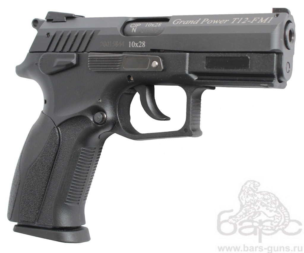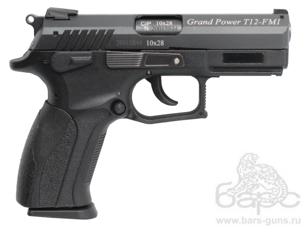 Травматический пистолет Grand Power-12-FM1 10х28 - новая версия уже зарекомендовавшего себя травматического пистолета Grand Power-12, которая отличается цельным стволом без дополнительных выемок, что сказывается на мощности пистолета. В остальном это все тот же качественный, надежный, с большим сроком службы травматический пистолет для самообороны. Стрельба из пистолета ведется патронами травматического действия калибра 10х28. Двухрядный магазин вмещает в себя 10 патронов в данном калибре. Работа автоматики основывается на принципе отдачи свободного затвора. Благодаря двусторонним органам управления, пистолет Гранд Пауэр подходит как для правши, так и для левши. Для установки дополнительных аксессуаров пистолет оснащен планкой Пикатинни. Все детали пистолета изготовлены из высококачественных материалов с высочайшей точностью.
